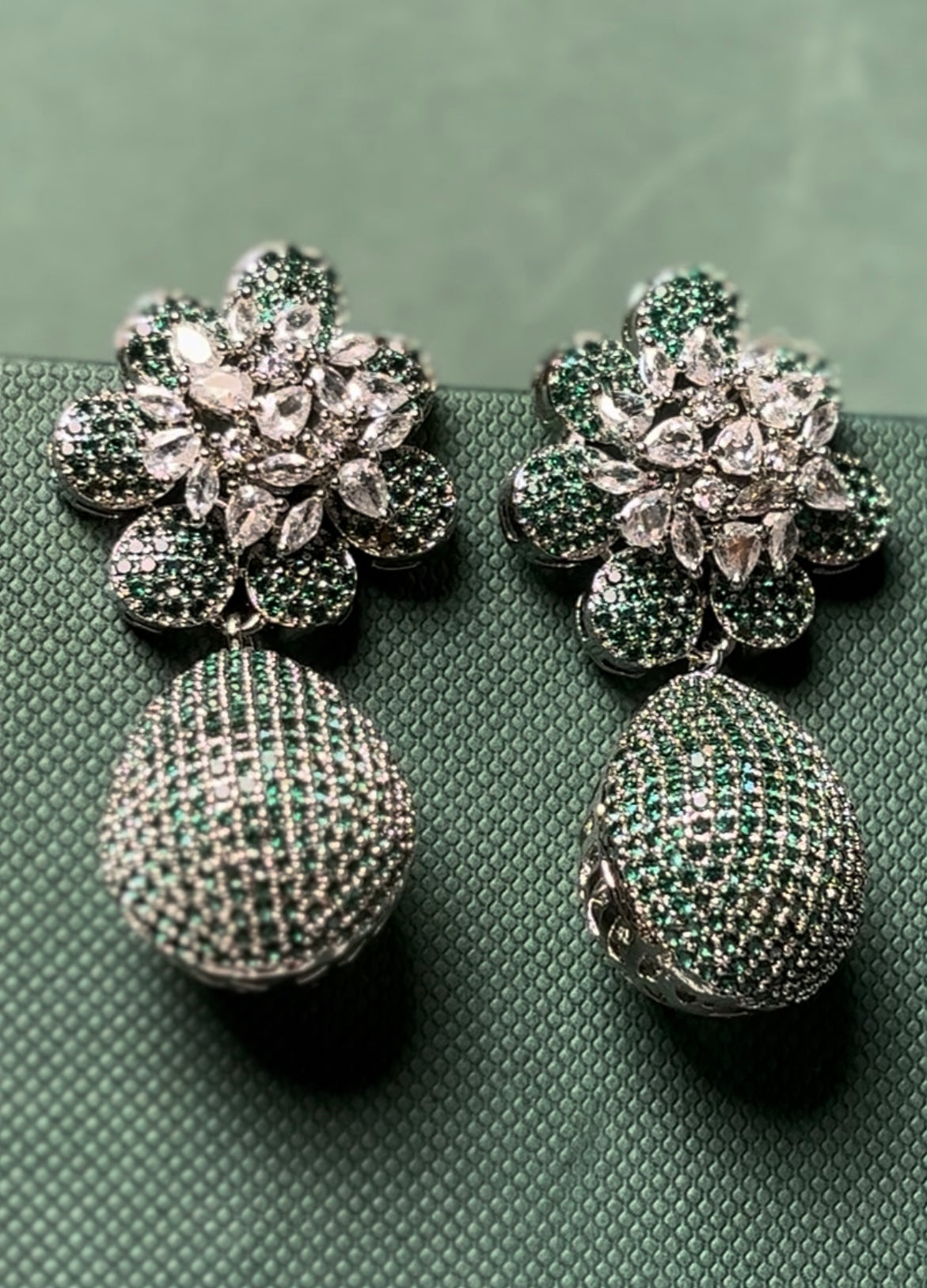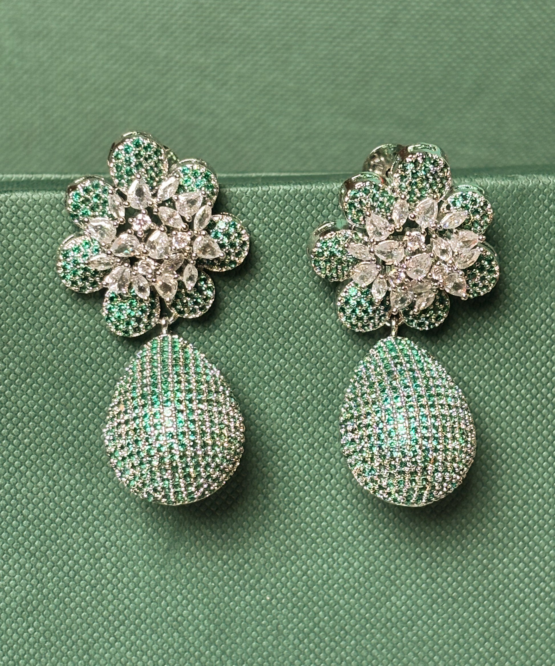 Material & Care Material: Brass with rhodium plating and AAA+ cubic zirconia and simulated emerald stones.
