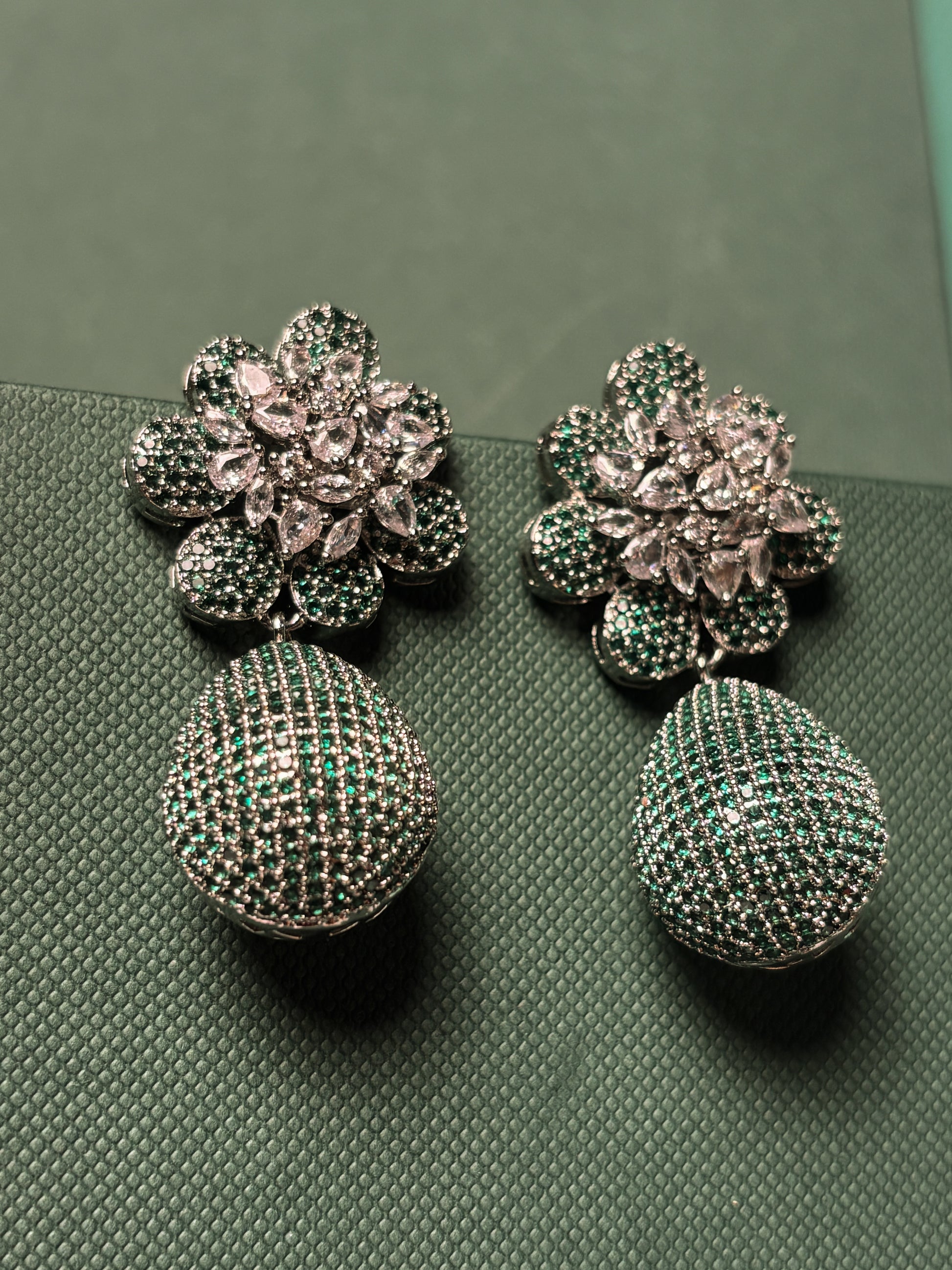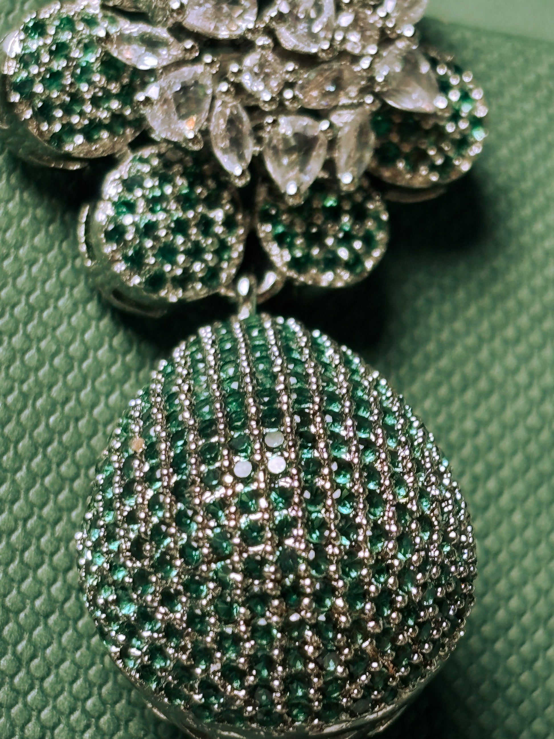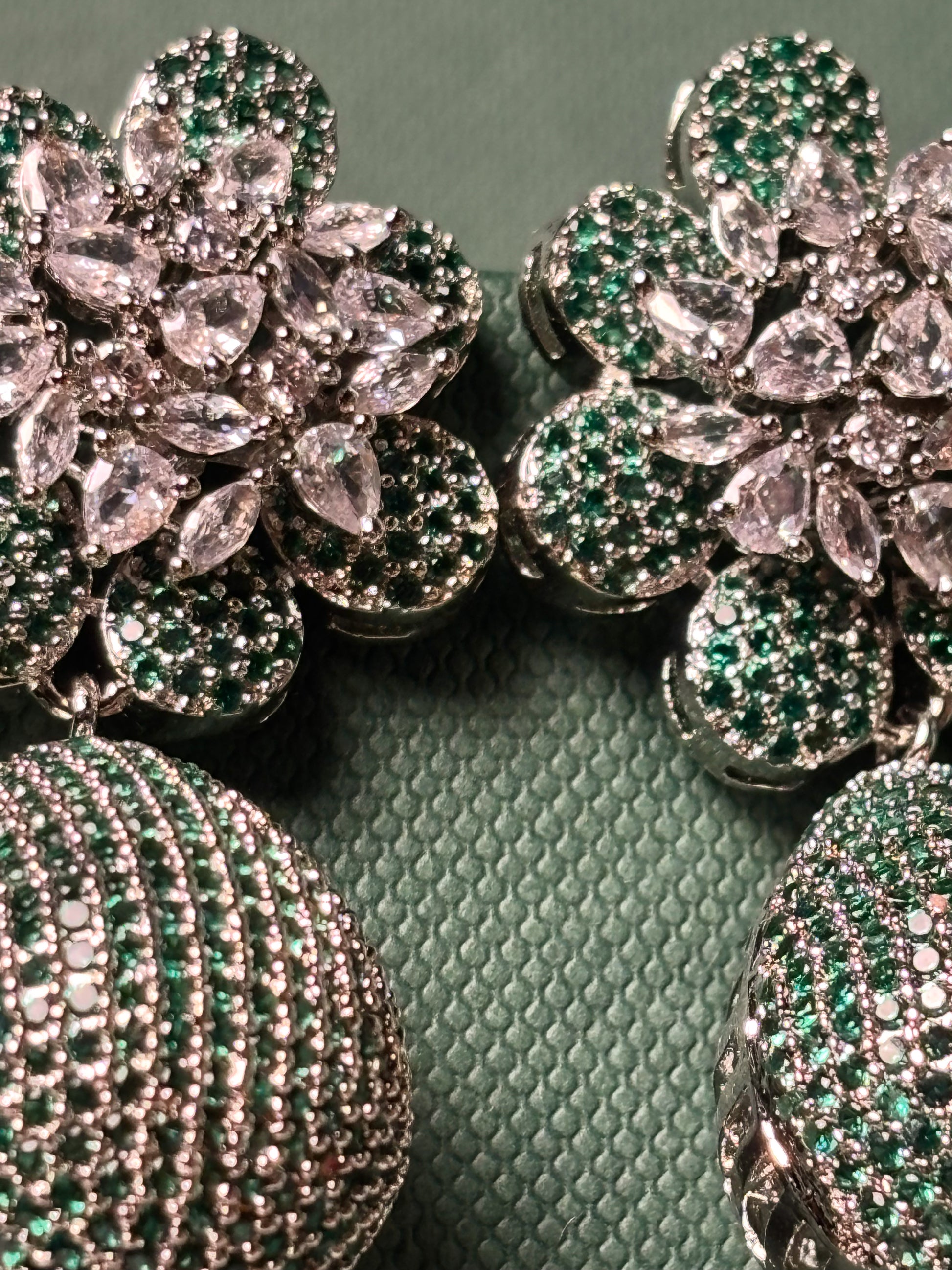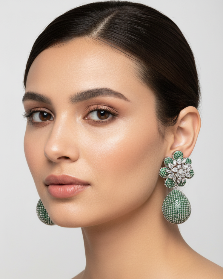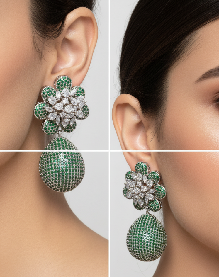 Stone Type: AAA+ Graded American Diamond (Cubic Zirconia) and High-Grade Simulated Emeralds.